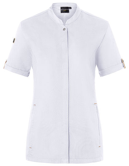 - Stylische Applikationen aus Kontrastbändern an den Ärmeln und im Nacken